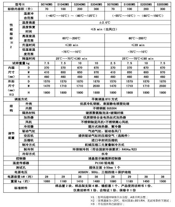 MC028系列溫度沖擊試驗(yàn)箱  一、產(chǎn)品簡(jiǎn)介 用途:適用于對(duì)電工、電子和其他軍用設(shè)備在周?chē)髿鉁囟燃眲∽兓瘲l件下的適應(yīng)性試驗(yàn)。 特點(diǎn): 1.充分吸收國(guó)外同類(lèi)產(chǎn)品的優(yōu)點(diǎn),采用兩箱式上下結(jié)構(gòu),上箱體為高溫箱,下箱體為低溫箱。也可根據(jù)用戶(hù)要求設(shè)計(jì),制造左、右結(jié)構(gòu)的兩箱式溫度沖擊試驗(yàn)箱。也可以根據(jù)用戶(hù)要求采用單相式(或三箱式)結(jié)構(gòu)設(shè)計(jì)。 2.觸摸屏+PLC可編程邏輯控制器,RS485接口。 3.有工作室超溫、壓縮機(jī)過(guò)載、超壓、油壓超壓、風(fēng)機(jī)過(guò)載、缺相、壓縮機(jī)延時(shí)等保護(hù)功能,還有若干用戶(hù)選配的安全保護(hù)功能,如風(fēng)速過(guò)低,大門(mén)未關(guān)閉等等。 4.可選配遠(yuǎn)程監(jiān)控計(jì)算機(jī)及軟件,上位機(jī)實(shí)行冗余設(shè)計(jì),可連接PC電腦,也可連接觸摸屏控制器。上位機(jī)關(guān)機(jī)不影響系統(tǒng)控制。 二、技術(shù)參數(shù):