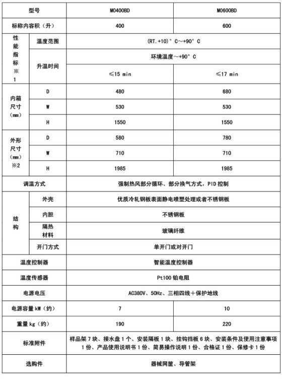 1 :型號后綴帶D標(biāo)識對開門方式,帶B表示不銹鋼外殼,都缺省時(shí)表示外殼為冷板噴塑,單開門方式。