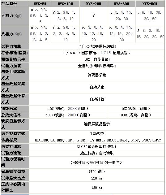 一、產(chǎn)品簡(jiǎn)介: HVS觸摸屏維氏硬度計(jì)為上海研潤(rùn)自主開發(fā)升級(jí)產(chǎn)品,采用5.6寸真彩色觸摸屏、源于奧迪多媒體操控原理設(shè)計(jì)而成,操作更加直觀方便是光機(jī)電一體化的第四代高新技術(shù)產(chǎn)品,該機(jī)器造型新穎,具有良好的可靠性,可操作性和直觀性,是采用精密機(jī)械技術(shù)和光電技術(shù)的新型維氏和努普硬度測(cè)試儀器。 測(cè)量范圍:微小、薄形、表面滲鍍層試件和玻璃、陶瓷、瑪瑙、人造寶石等較脆而又硬材料.是科研機(jī)構(gòu)、企業(yè)及質(zhì)檢部門進(jìn)行研究和檢測(cè)的理想的硬度測(cè)試儀器 二、性能特點(diǎn): 1、自動(dòng)加卸荷試驗(yàn)力機(jī)構(gòu),試驗(yàn)力保持時(shí)間可在0~60秒間任意選擇 2、采用計(jì)算機(jī)軟件編程,可進(jìn)行維氏和努氏標(biāo)尺間的轉(zhuǎn)化 3、穩(wěn)定的光學(xué)測(cè)量系統(tǒng),能調(diào)節(jié)測(cè)量光源的強(qiáng)弱 4、觸摸屏面板顯示屏直接顯示硬度值,使用方便且測(cè)量精度高 5、實(shí)驗(yàn)結(jié)果和數(shù)據(jù)處理能夠自動(dòng)儲(chǔ)存可通過(guò)微機(jī)打印機(jī)輸出 三、技術(shù)參數(shù):
